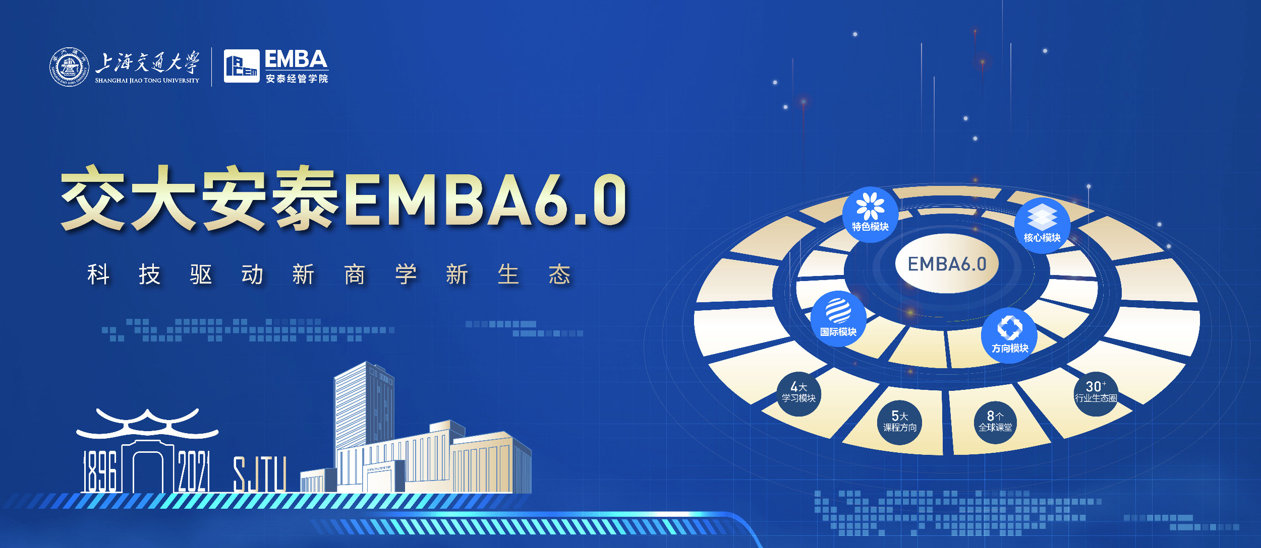 上海交通大学安泰EMBA以培养创新领导力为主线,依托百年交大的厚重积淀,践行“纵横交错 知行合一”的学院发展战略,应时而变,全新打造4大模块(核心模块、方向模块、特色模块、国际模块),5大方向(综合管理、智能科技、金融科技、创新创业、国际方向),8个全球课堂(美国、英法、德国、瑞士、瑞典、日本、以色列、新加坡),30+行业生态圈赋能(行业研究理念正式进入学历学位教育课程体系中),助力行业创领者提升认知维度,重构知识图谱,赋能商业实践。
