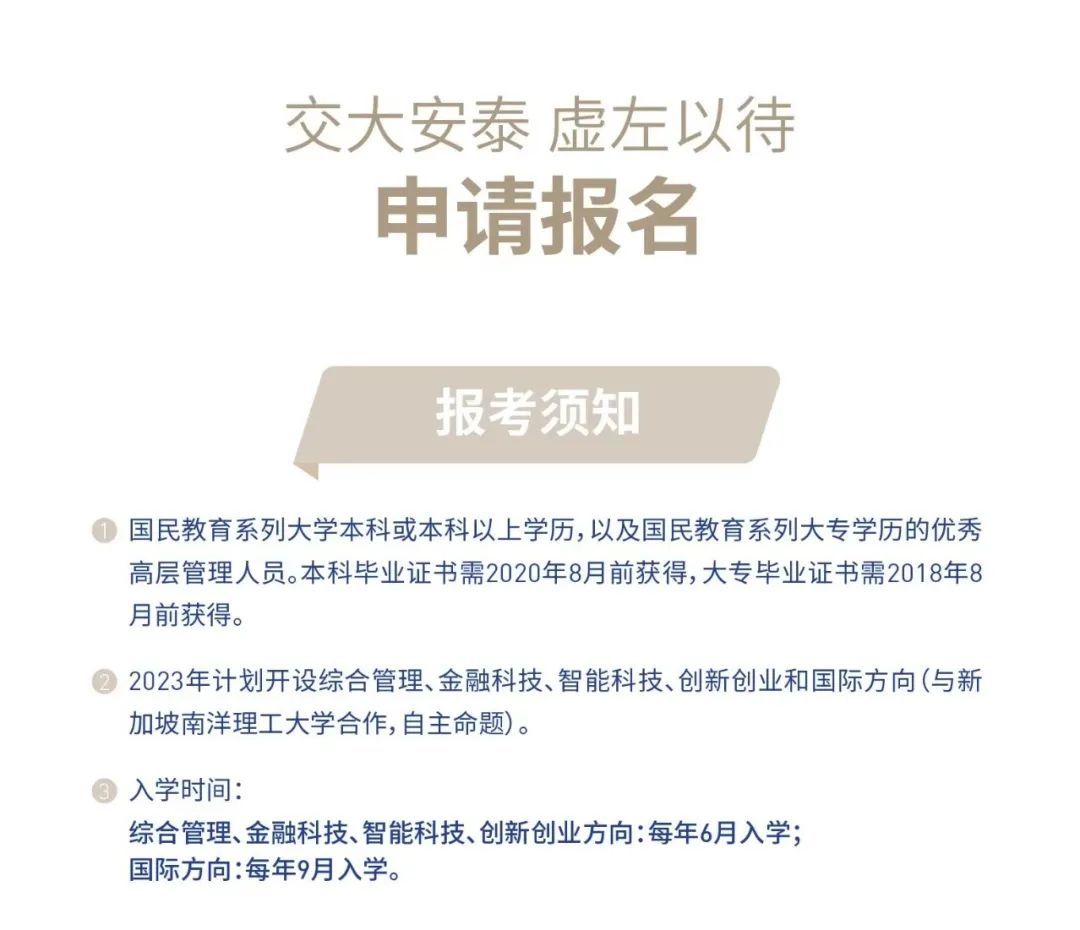 【招生简章】2023交大安泰EMBA虚左以待
