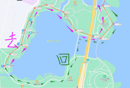 全程线路总览(其中5km,10km,15km组各自选择合适的返回点):