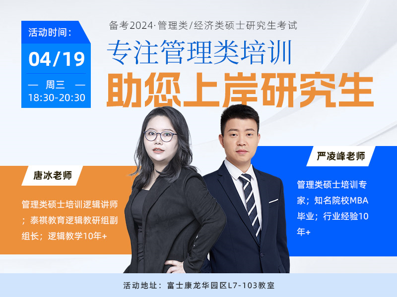 主讲老师:唐冰(管理类硕士培训逻辑讲师;泰祺教育逻辑教研组副组长;逻辑教学10年+)